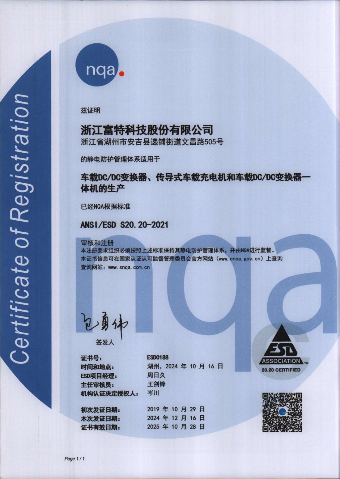 浙江富特科技股份有限公司,成立于2011年8月,生產基地位于湖州市安吉縣,研發中心位于杭州市西湖區、西安市高新區,是一家專注于新能源汽車核心零部件的國家級高新技術企業,是國內新能源汽車車載充電機及車載 DC/DC 轉換器的主要供應商。